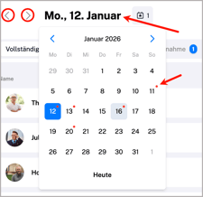 → klicke auf das Datum, um die Kalendernavigation zu öffnen