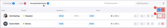 → weiter unten im Artikel unter To-dos findest Du alle weiteren Details dazu - Reiter Dienstplanübernahme: