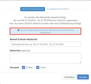 Durch die Nachricht Dienstplanänderung wird der Dienstplan ebenfalls automatisch für die Mitarbeitenden freigegeben und in der App angezeigt: