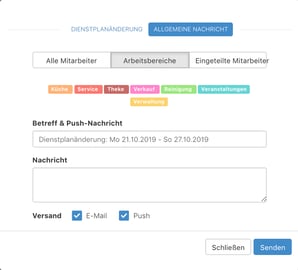 Versende eine Nachricht als Push-Nachricht und/oder E-Mail an (ausgewählte) Mitarbeitende.