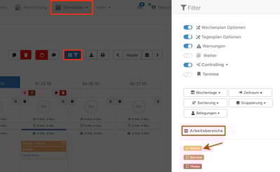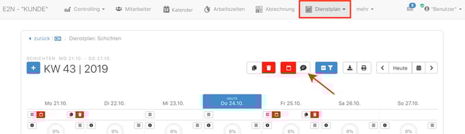 Im Dienstplan öffnest Du den Benachrichtigungsdialog über die Sprechblase: