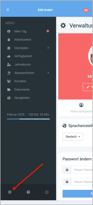 Über das App-Menü und das Zahnrad unten links gelangt man in die App-Einstellungen.