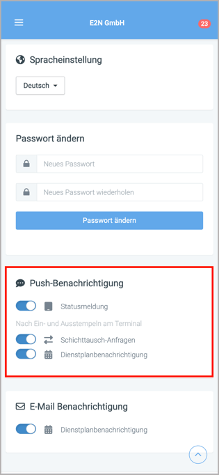 Im Personalzugang müssen die Push-Benachrichtigungen ebenfalls erlaubt werden.