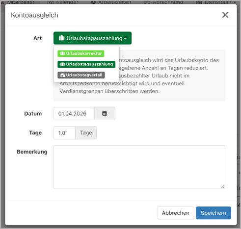 Im Urlaubskonto finden ebenfalls Kontoausgleiche am Urlaubskonto statt.
